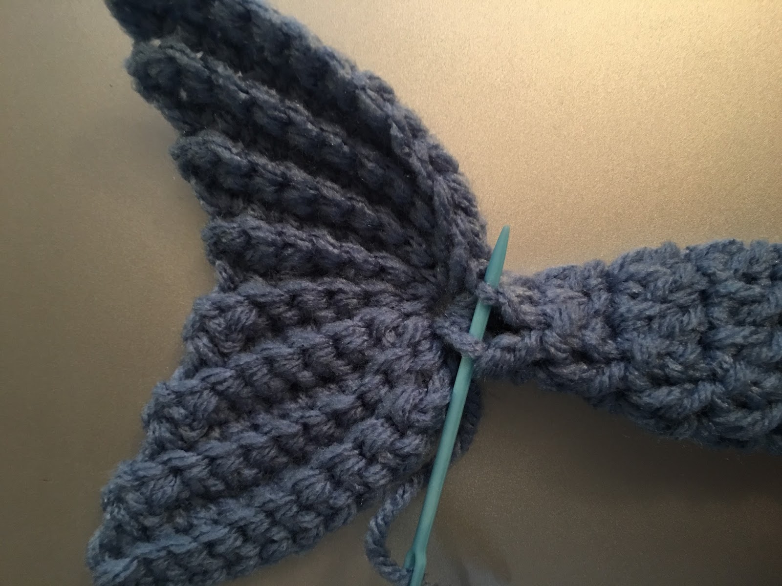 Round 1: ch2 6DC into loop formed at top of fin, join to top of 1st DC (not ch2)(pictured above is 6DC in the loop formed by the sl sts before joining)